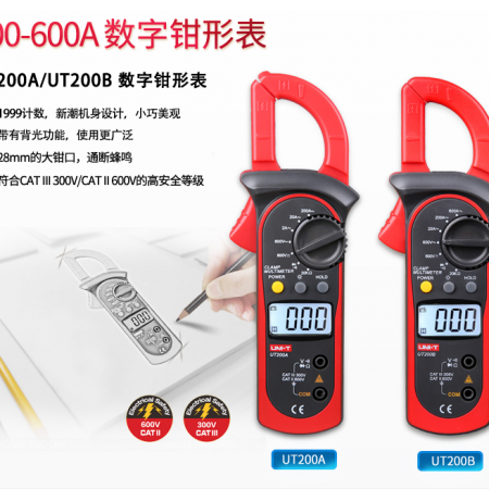 UT200A是一款性能穩(wěn)定、安全、可靠的1999計(jì)數(shù)的數(shù)字鉗型表,其獨(dú)特的外觀設(shè)計(jì)、嚴(yán)謹(jǐn)?shù)慕Y(jié)構(gòu)設(shè)計(jì),合理的功能配置使之成為一款性能優(yōu)異的專用電工儀表.特別針對(duì)電工用戶的設(shè)計(jì),尤其適合設(shè)備的日常巡檢和維護(hù)。UT200A(最小交流電流2A)的特點(diǎn)使得產(chǎn)品可以用于小型家用電器設(shè)備(低功率)的測(cè)量。